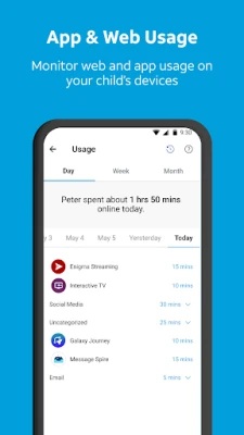 * Track web and app usage on child devices